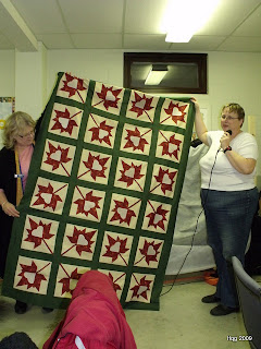 Pat Finch was also on hand to witness a parade of children’s quilts made by our members. Every month quilts for kids are turned in to be donated to the Children’s Aid Society of London. Pat explained to us that there are 2 ways that these quilts are passed onto families. One is when the quilts are given to the babies and children that come into the care of the CAS and the other is through their Infant Care and Parenting program. Graduates of this program receive one of these quilts. The LFQG donates around 70 of these quilts to CAS a year.