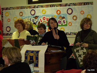 Our 2 special guests were Christine Poier from Meals on Wheels and Pat Finch from Children’s Aid Society of London. As Christine explained the services that Meals on Wheels offers their clients, the LFQG presented a special show and share of the wonderful placemats made by our members.
