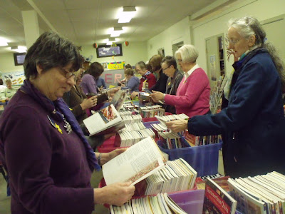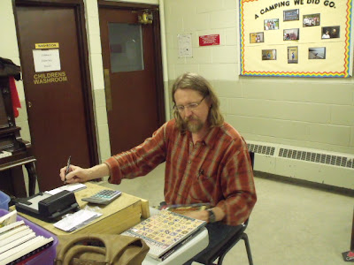 The April meeting of the London Friendship Quilt guild was held last week and a good time was had by all those who were able to make it. We almost had to cancel the meeting due to the threat of freezing rain, but our vendor of the month and speaker were both able to make it and get home safely before the storm hit. Our vendor of the month was Bert from Grantham books. He brought a lot of books along for us to browse through. A lot of the books found happy new homes :-).