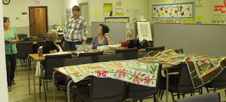 We learned a variety of hand applique techniques including easy template making, placement overlays, reverse applique and cutaway applique.  I’m sure we were all overwhelmed with all the information! It was a great workshop!