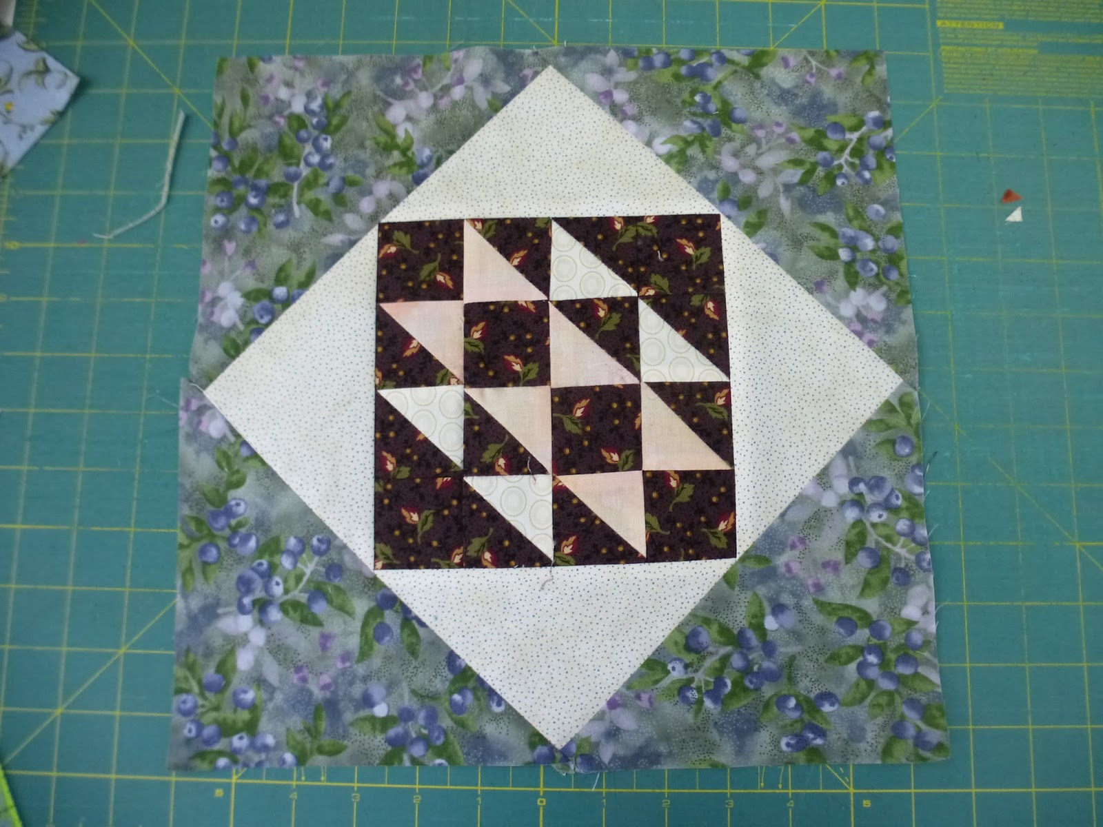 Go here for the finishing instructions. The large dark triangles are on the outside this time.