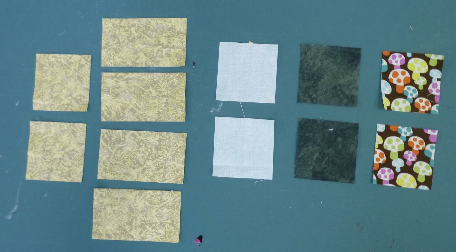 Light fabric #1: cut 2 @ 2 3/8 x 2 3/8 inches square