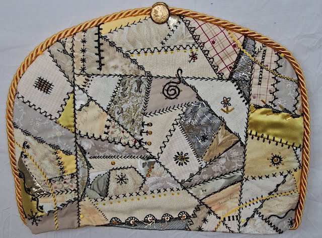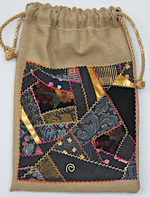 Bev White will be speaking for the LFQG on Thursday evening, April 14. On Friday, April 15, she will be teaching a workshop on crazy quilting including basic hand embroidery, ( with reference to the possible use of machine embroidery ) to make a useful object…with some instructions for each…a shoe bag, a Christmas stocking, a cushion cover, a tea cozy, a wall hanging etc (see photos below).