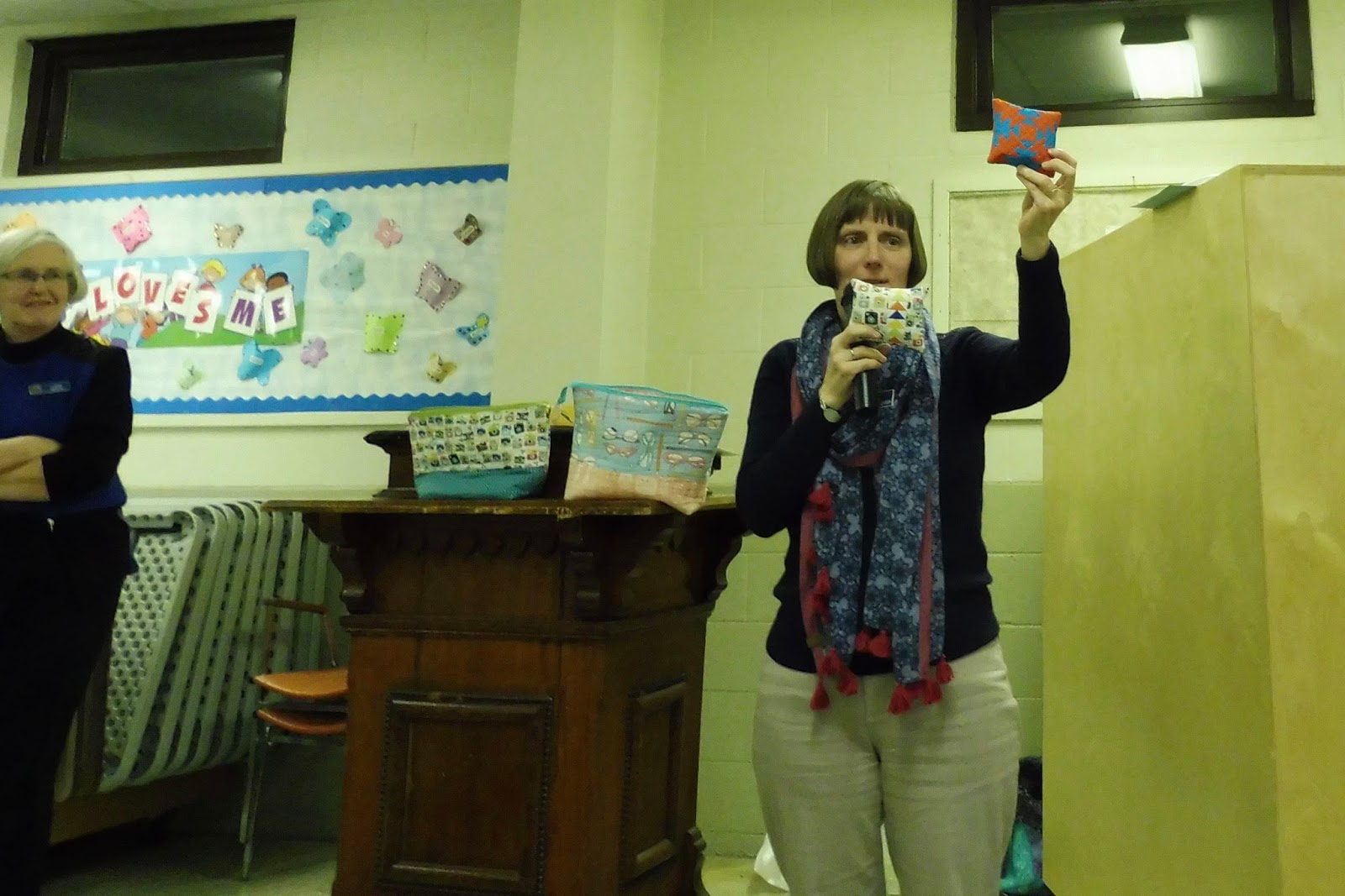 Show and tell was next. Gail M showed us a couple of zipper pouches she’d made, as well as some pincushions.