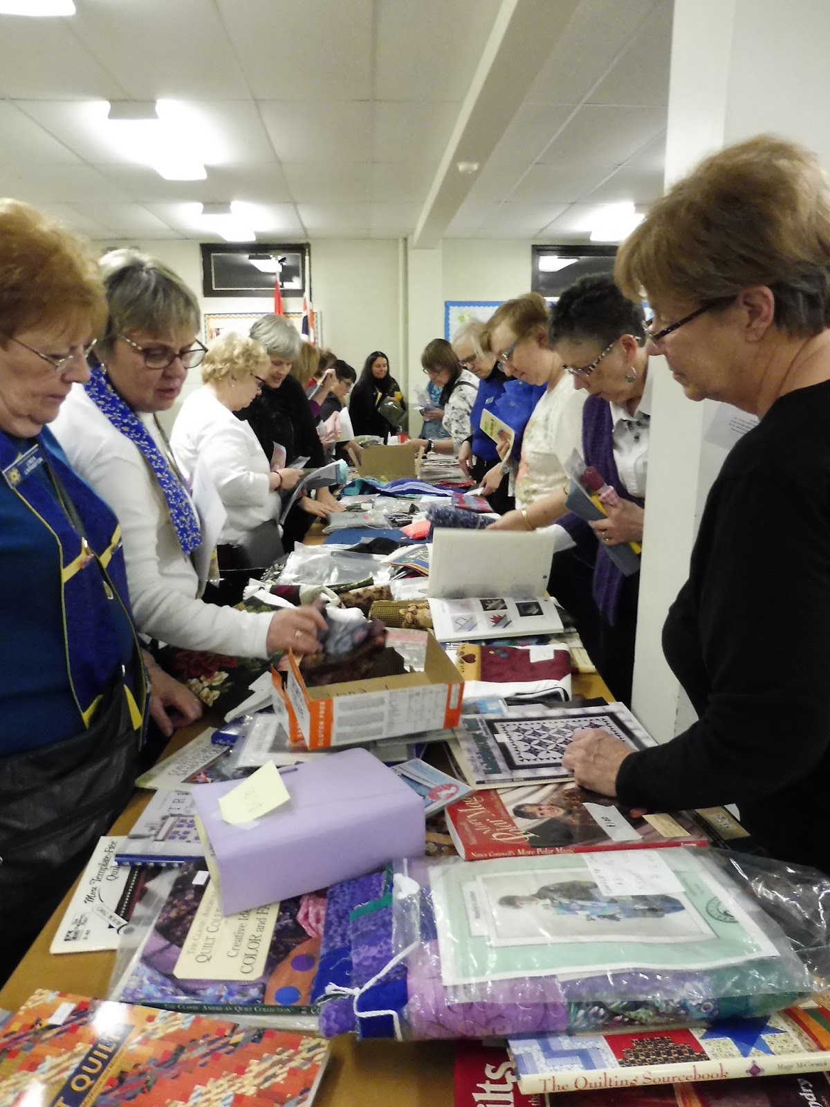 This meeting was our annual rummage sale. Members brought things they wanted to sell, that hopefully another member would want. The funds raised go to our outreach committee, which looks after the Quilts of Colour, quilts and pillow cases for Children’s aid and also the comfort quilts for our members. We had a large amount of goods for sale, and a large numberof members shopping.