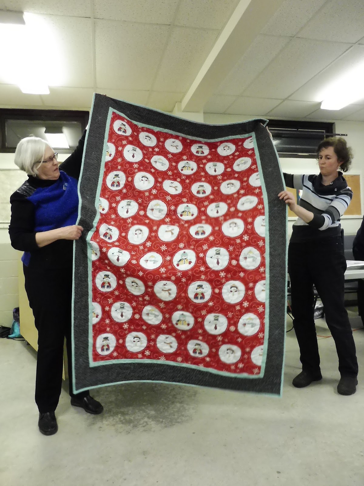 And this lady, unfortunately I don’t know her name, showed us her snowball Christmas themed quilt. For more photos from the meeting, go here.