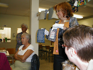 Welcome back ladies! and new members, too! It was a full house for our first meeting, so full that we got a late start and ended late! But it was worth it to see the projects that our members have been working on over the summer and the Tiny Treasures that Pat Menary brought for her trunk show.