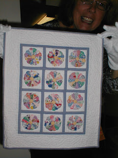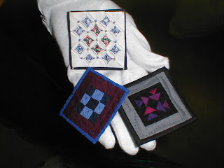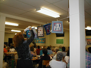 Below our members volunteer to walk around with some of these tiny quilts so we could get a better look.