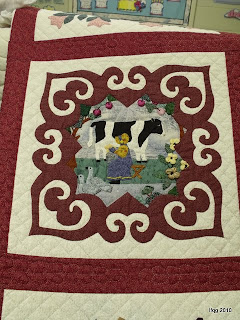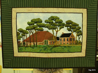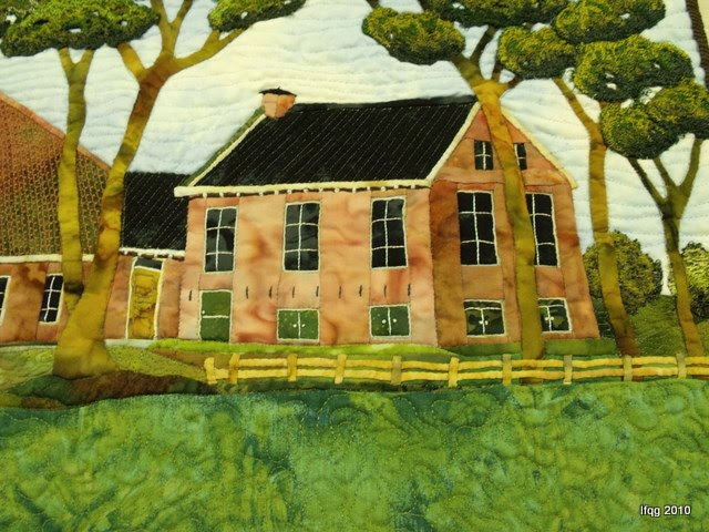 One quilt that she is particularly proud of, is an interpretation of her native family farm in Friesland. Working from a photograph and her memories, she created this gorgeous quilt of her family home! It wasn’t until she found the perfect piece of fabric that represented the brick for building did the whole piece come together.