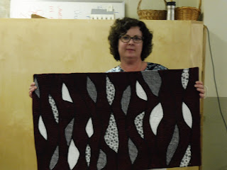 A shop hop sampler, I think by Maureen H. If I’m wrong, let me know and I’ll change it. Pam S, a new member this year, brought her Disappearing four Patch