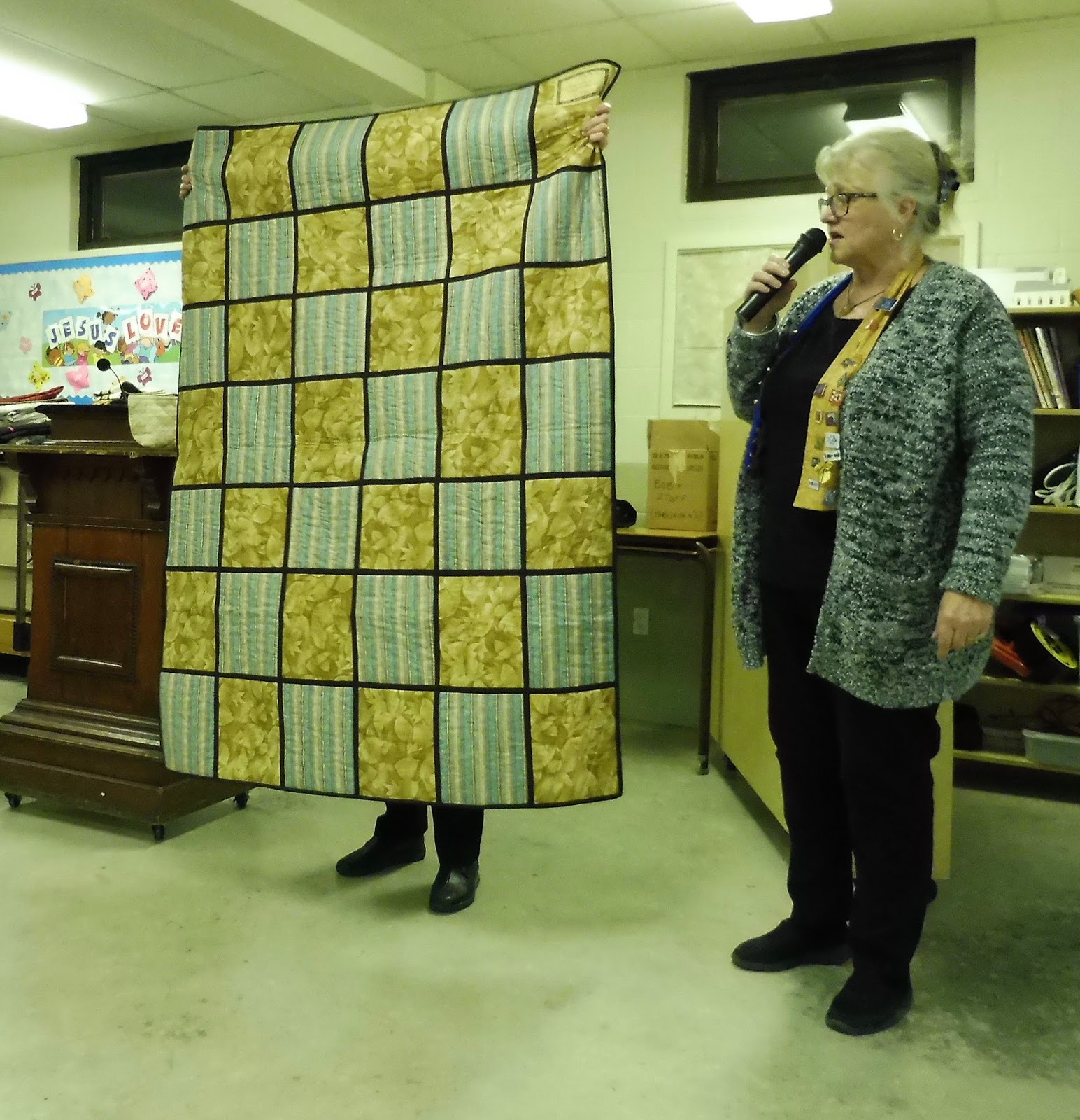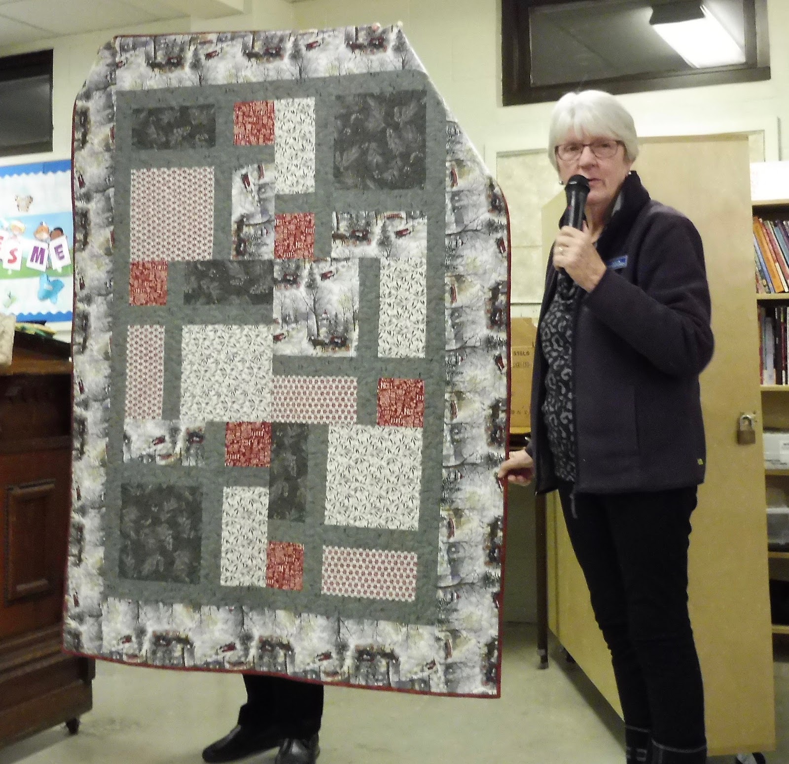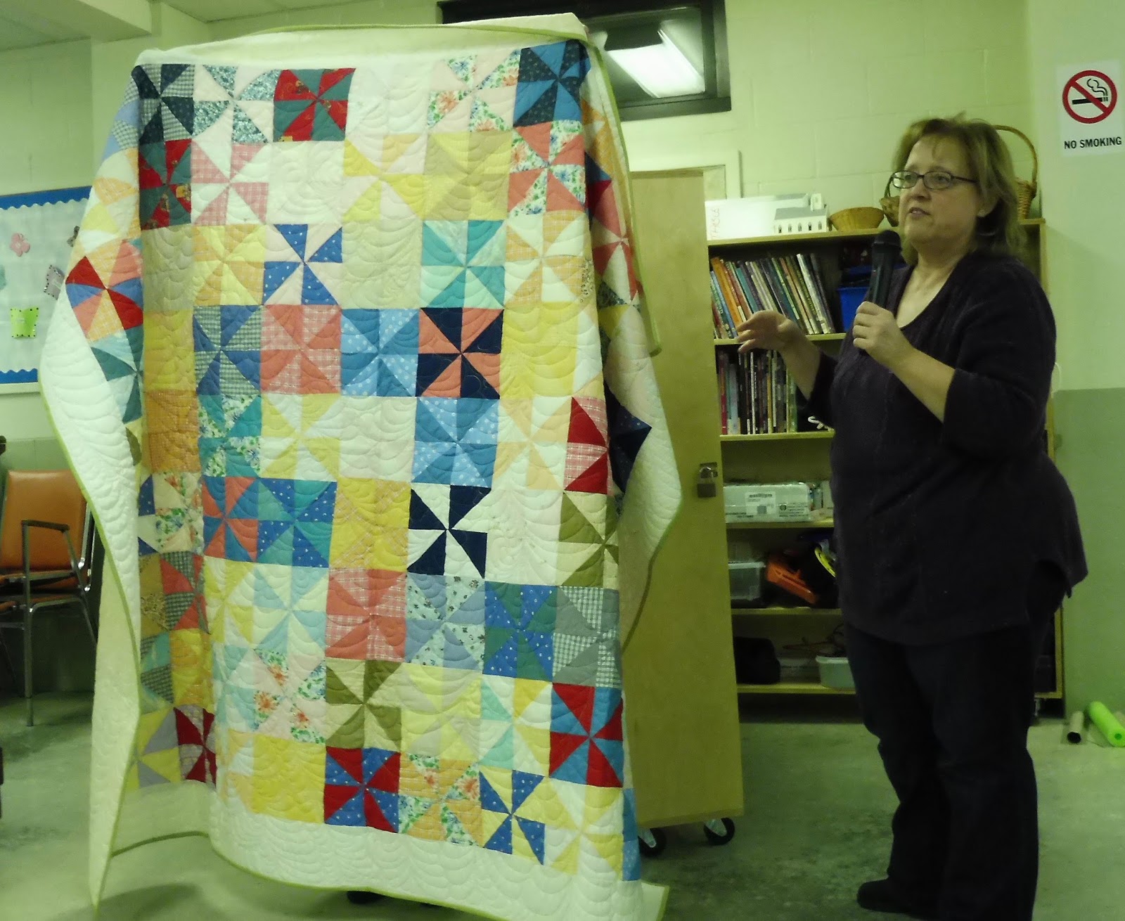 Also, before going into the happenings at the meeting, I want to issue thanks to all our members for the support you are giving to the comfort quilts committee. There were over 40 black and white with coloured centres handed in at the meeting. Thank you so much! And please, keep them coming.
