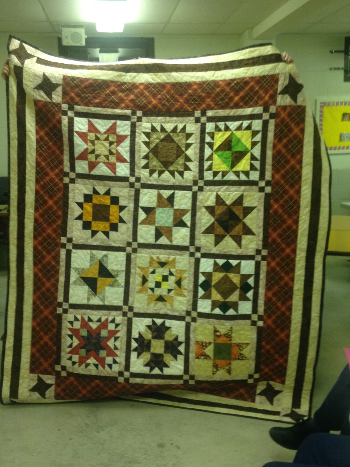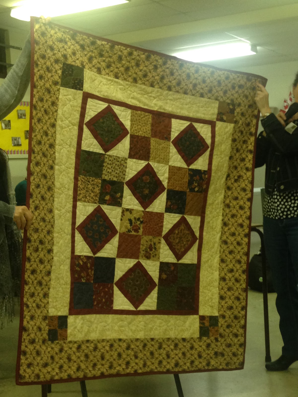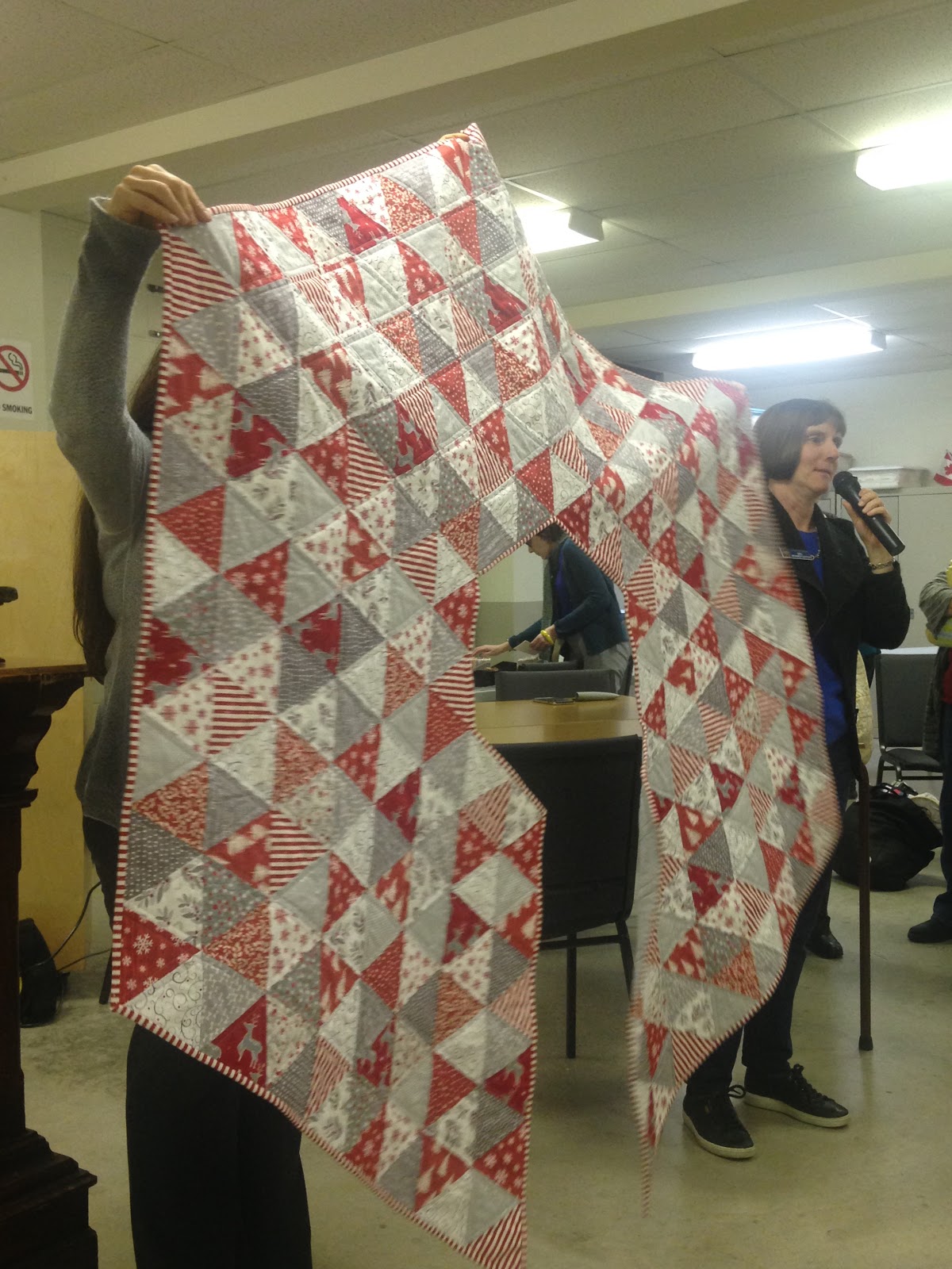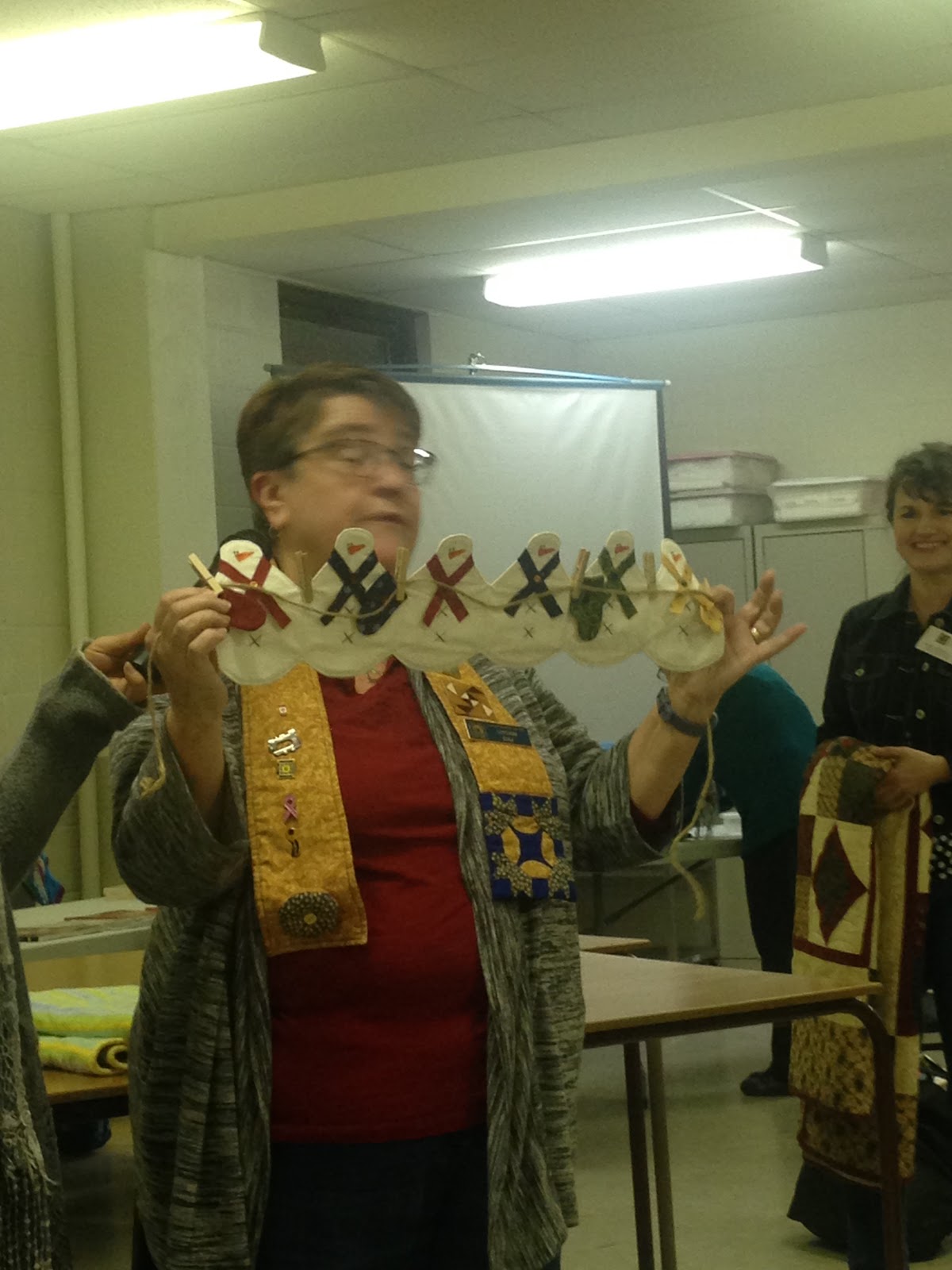 January 2018 show and tell Leave a Comment / Uncategorized / By sonyananos Susan: Baby Quilt Barb: scrappy quilt made from donated fabric. Joy: blue table runner Gail: Christmas tre skirt. 360 triangles Irene Add captionSusan: snowmen Susan: quilted sewing box Ronda: Lap quilt