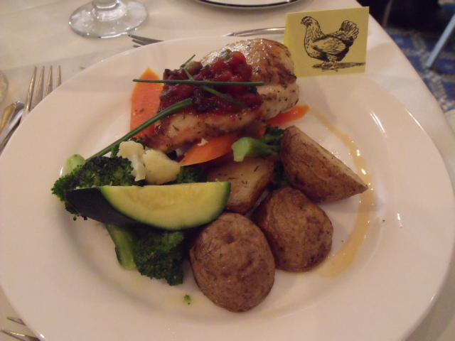 …or chicken. Jill printed fish and chickens on her computer so the servers would know who ordered what :-).