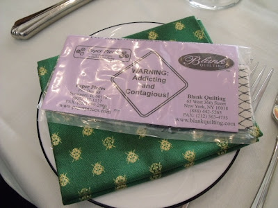 Each place setting had a FQ and a small hexagon paper piecing kit:
