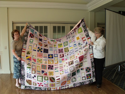 Rose was presented with a lovely quilt made of blocks sewn by various members of the guild including signature blocks. Rose was very surprised! Amazing what goes on at the meetings when the President thinks we are all listening to her 🙂