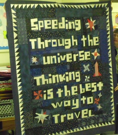 Carol’s quilts included hand and machine quilting, applique and embroidery all done with her improvisational and unique style. Her T-shirt quilts, comic book quilts and quilts with words were very eye-catching and interesting.