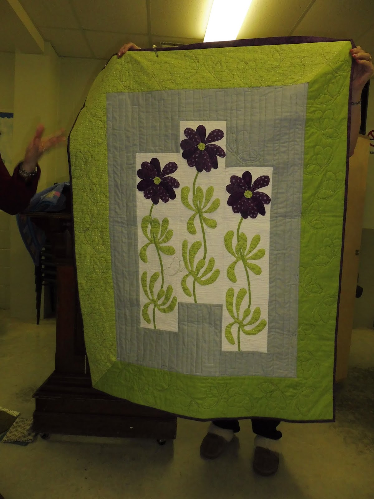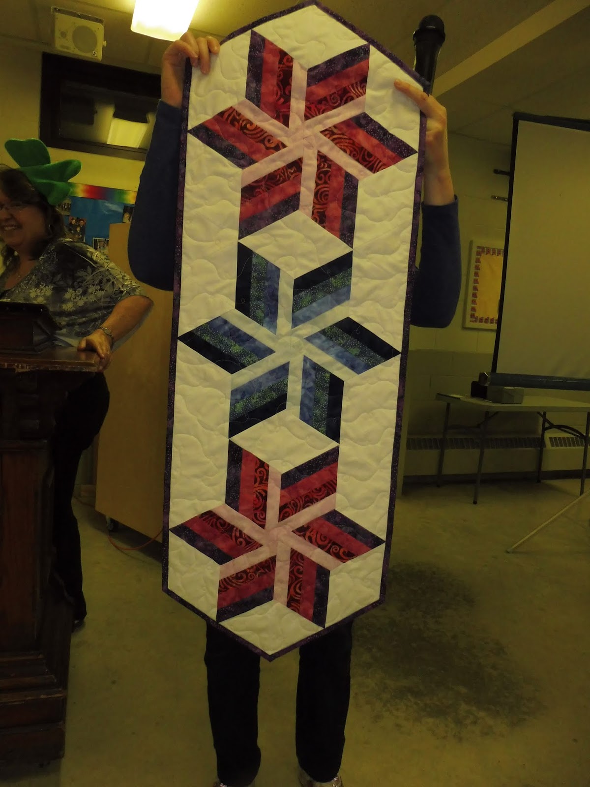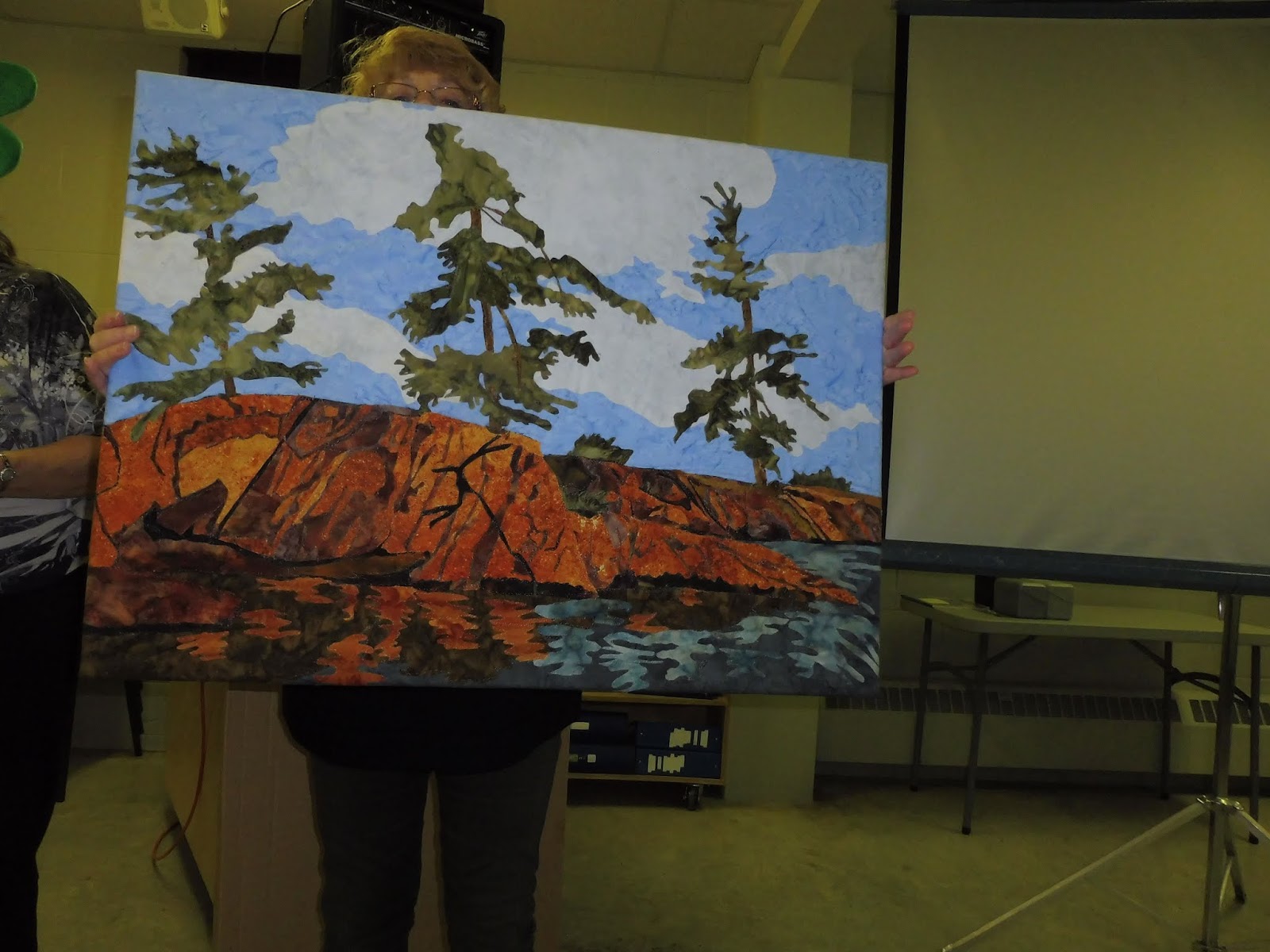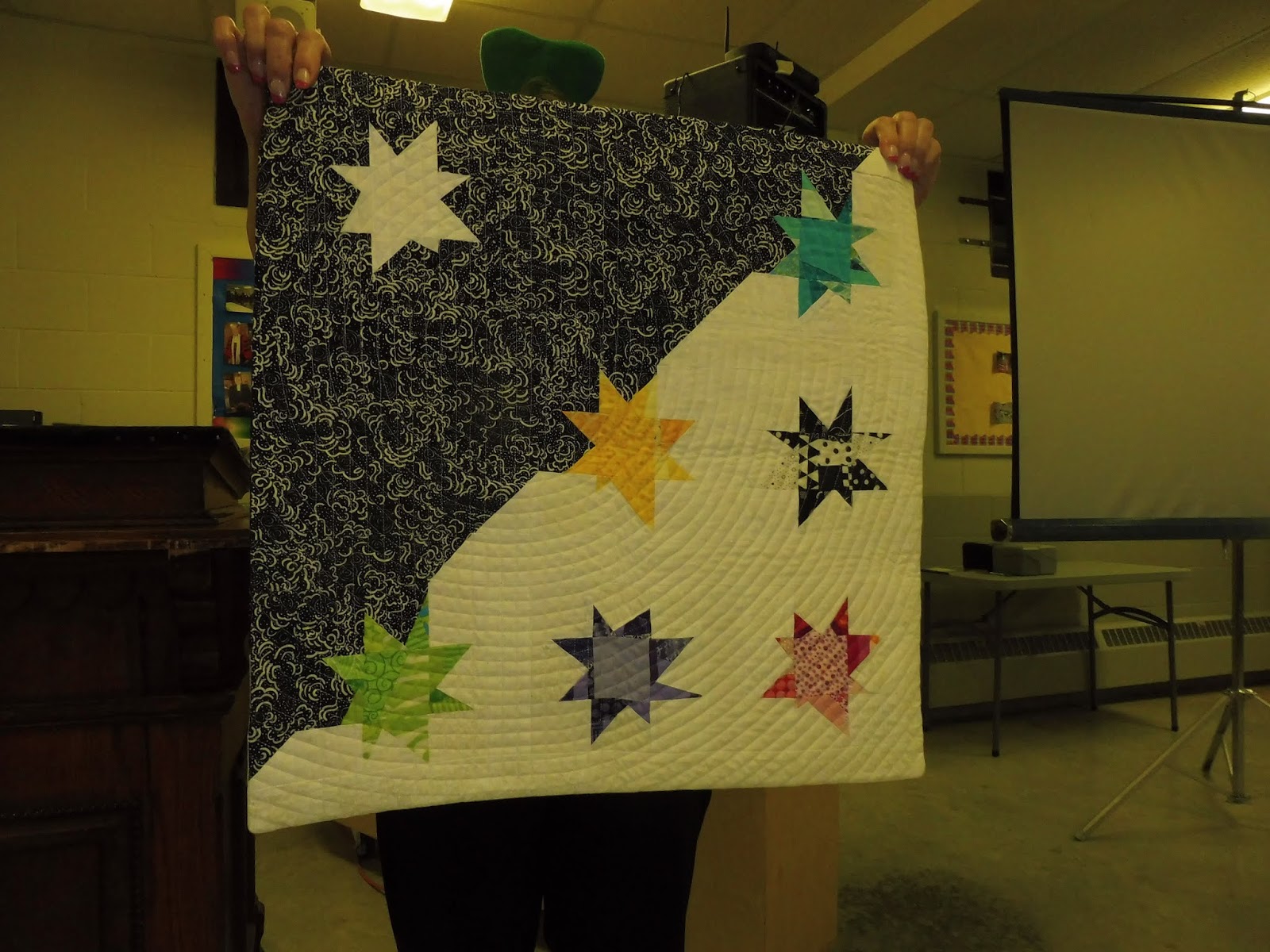 When Valerie Wilson’s flight was cancelled Kim and her committee came up with a plan. It was Member Promotion night. We have members who own quilt stores, online quilt related businesses and published authors. We have members who are also into other crafts such as embroidery and felting. And we were very interested to learn these things. This was a fabulous idea!!!