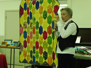 Heather Bell was our guest speaker at the October general meeting. Heather showed us some of her early sewing projects and then moved to her many quilts. Heather business called Heather Bell’s Sewing Studio specializes in Batik fabrics, features Marti Mitchell templates and has been in business 26 years. Heather also sells Pfaff sewing machines and teaches software application. Heather’s workshop, Little Landscapes, has been rescheduled to October 23rd. Those attending are asked to arrive at 9:30 to set up so that the class can start at 10:00 am.