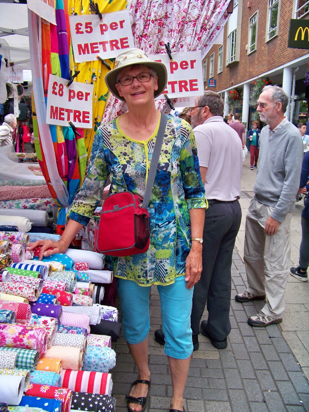“The first one was taken in England. We were visiting friends and were in Canterbury and saw a farmers market. As we strolled through it, I found this stall that was selling fabric from large bolts. Price was quite reasonable but I did not buy anything!