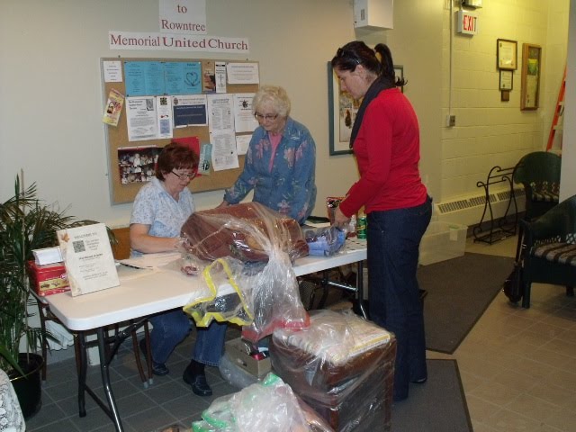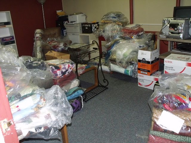 Today the quilts were delivered to the Church in preparation for the Harvest of Quilts Show taking place this Friday and Saturday. Here are the ladies taking in the quilts and making sure all the receipts went to the correct people.