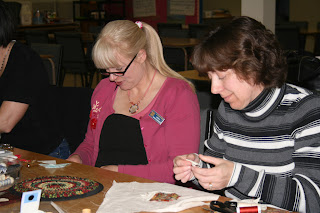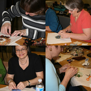 About 12 women joined Gail M for the President’s workshop on traditional Russian rug making. The rugs are composed of triangles folded “beak-like” and arranged in a circle. A wonderful project that uses up scraps!