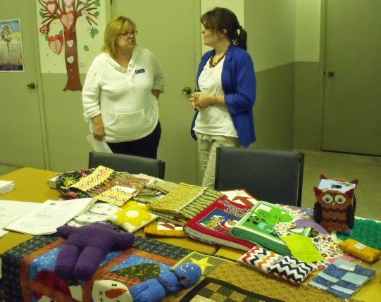 During break time the sign-up tables for Workshops, the Row of the Month Mystery Quilt and Volunteers were very busy. Also on display were the quilts turned in by members for Community Outreach, the projects made by members who went on the CQA Bus Trip and the donations of small projects for the Sale Table at the Quilt show. We also enjoyed snacks and juice or tea, provided by the Program Committee.