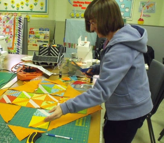| Lorraine making a decision Below you can see some of the work that was accomplished during the Sew-in-Day.